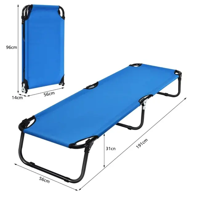 Večnamenska uporaba: Ta zložljiva posteljica je idealna za zunanjo in notranjo uporabo, kot nalašč za kampiranje, pohodništvo, ribolov, plažo, teraso, bazen, travnik, vrt ali pisarno. To posteljico za odrasle pa lahko uporabljate tudi kot ležalnik za sončenje, začasno posteljo za goste ali pisarniško posteljo. Na posteljico za kampiranje lahko za večje udobje položite tudi blazino.