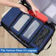 Povečajte prostor v prtljagi: Ta zložljiva potovalna torba za shranjevanje je zasnovana tako, da vam pomaga povečati prostor v prtljagi. Njena pametna zasnova vam omogoča, da lepo organizirate svoja oblačila, spodnje perilo in toaletne potrebščine, s čimer preprečite, da bi se med potovanjem premikale. S stiskanjem predmetov lahko v kovček spravite več, kar olajša pakiranje in razpakiranje. Lahka konstrukcija torbe zagotavlja, da ne bo dodala nepotrebne teže vaši prtljagi, kar vam bo pomagalo, da se izognete stroškom za prekomerno prtljago.