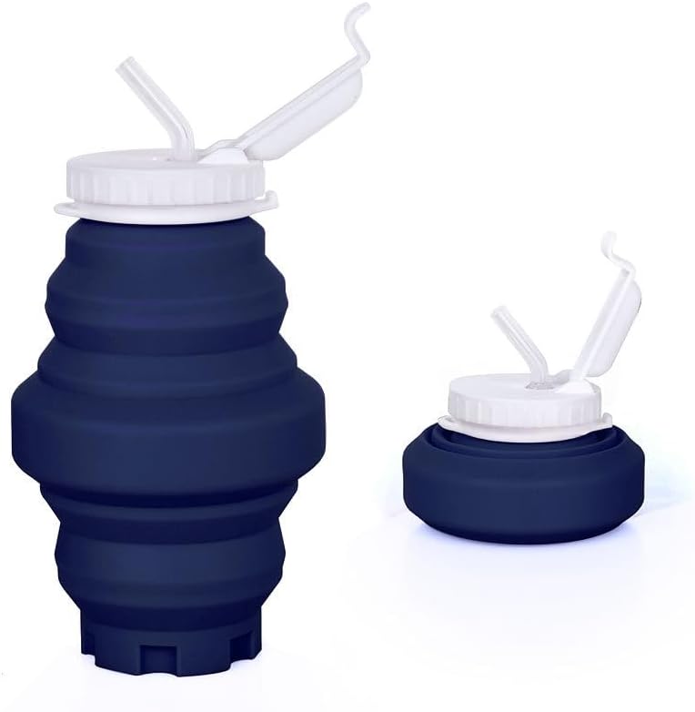 Zložljiva steklenica za vodo, 551 ml silikonska zložljiva športna skodelica za vodo v stolpu s slamico, primerna za potovalna kolesa za kampiranje