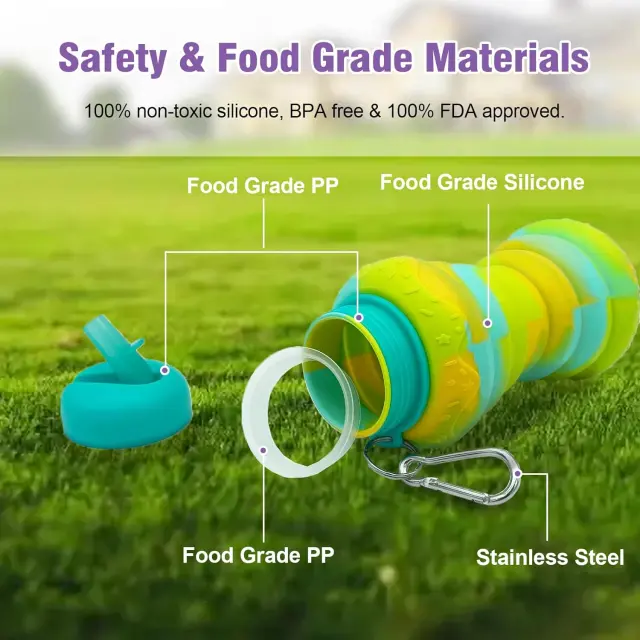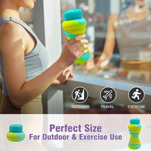 Zložljiva steklenica za vodo, silikonska steklenica za belo vodo za večkratno uporabo, primerna za potovanja, šola, šport, telovadnica, pohodništvo, k