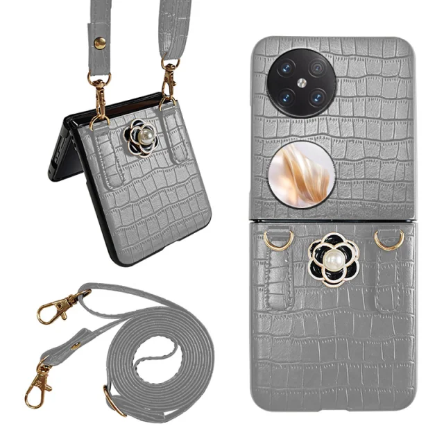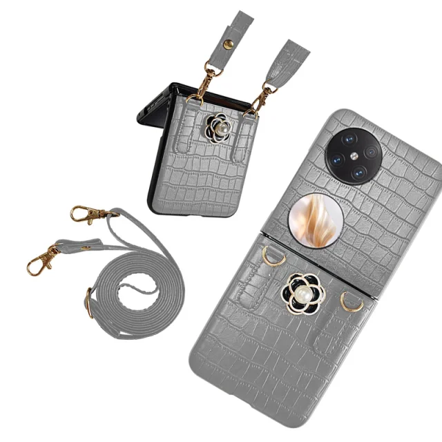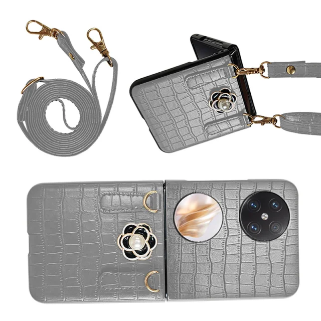 Zložljiva usnjena torbica čez ramo z naramnico za Huawei Pocket 2 Grey