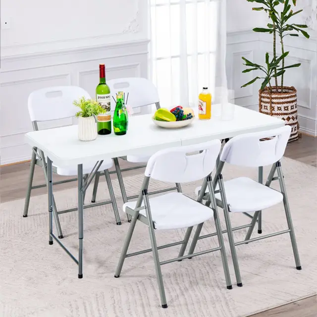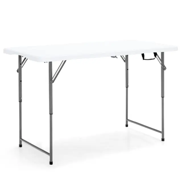 Priročno za uporabo in vzdrževanje: Zložljivi mizi so priložena ilustrirana navodila in jo je enostavno sestaviti, prilagoditi po višini in zložiti v nekaj sekundah. Za njeno sestavljanje ni potreben noben zahteven postopek. Še več, zaradi vodoodporne mizne plošče HDPE, ki je odporna na madeže in vodoodporna, je čiščenje povsem enostavno.