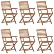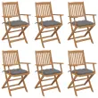Zložljivi Vrtni Stoli - Stol za vrti 6 kosov z blazinami trden akacijev les JS3160