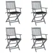 Zložljivi Vrtni Stoli - Stol za vrti 4 kosi z blazinami trden akacijev les JS2961