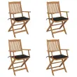 Zložljivi Vrtni Stoli - Stol za vrti 4 kosi z blazinami trden akacijev les JS2976