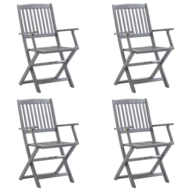Zložljivi Vrtni Stoli - Stol za vrti 4 kosi z blazinami trden akacijev les JS2969