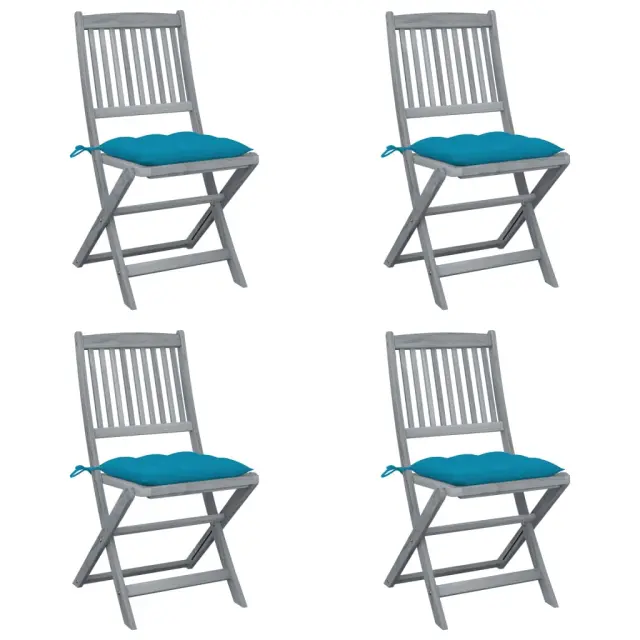Zložljivi Vrtni Stoli - Stol za vrti 4 kosi z blazinami trden akacijev les JS2955