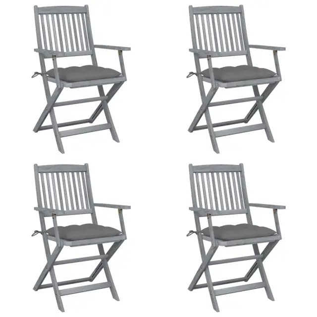 Zložljivi Vrtni Stoli - Stol za vrti 4 kosi z blazinami trden akacijev les JS2931