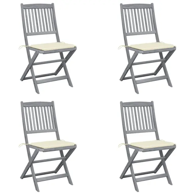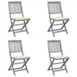 Zložljivi Vrtni Stoli - Stol za vrti 4 kosi z blazinami trden akacijev les JS2929