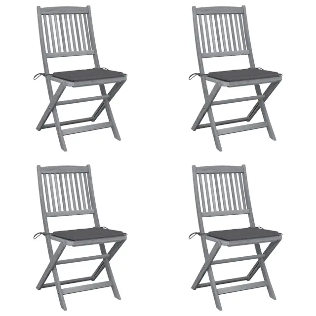 Zložljivi Vrtni Stoli - Stol za vrti 4 kosi z blazinami trden akacijev les JS2946