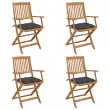 Zložljivi Vrtni Stoli - Stol za vrti 4 kosi z blazinami trden akacijev les JS2966