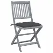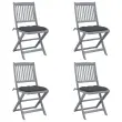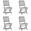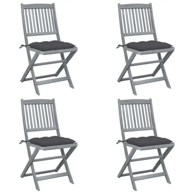 Ta komplet sodobnih vrtnih jedilnih stolov z blazinami bo na vaš vrt, teraso ali dvorišče dodal pridih naravnega čara. Ta komplet zložljivih vrtnih stolov je odlična izbira za večerjanje. Ti jedilni stoli so izdelani iz trdnega akacijevega lesa, tropskega trdega lesa, ki zagotavlja vodoodpornost in dolgotrajno vzdržljivost. Trden akacijev les je dovolj močan za prenašanje teže ter se dobro spopada z obrabo in uporabo. Siva sprana površina je preprosta za čiščenje z vlažno krpo. Stole lahko zložite in tako prihranite prostor, ko niso v uporabi. Priložene blazine zagotavljajo dodatno udobje med počivanjem ali večerjanjem. Vsaka blazina ima dva kompleta vrvic za dobro pritrditev na stol.Barva blazine: AntracitnaMaterial stola: Trden akacijev les (brušen) s sivim premazomMaterial blazine: Blago (100 % poliester)Dimenzije stola: 48,5 x 57 x 91 cm (Š x G x V)Dimenzije blazine: 40 x 40 x 7 cm (D x Š x V)Velikost sedeža: 44 x 39 cm (Š x G)Višina sedeža od tal: 45 cmZložljiva oblikaZ 2 kompletoma vrvic za pritrditev blazine na sedežPotrebno sestavljanje: DaPaket vsebuje:4 x Zložljiv stol4 x Blazina za sedež Največ 110 kg na sedež.