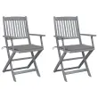 Zložljivi Vrtni Stoli - Stol za vrti 2 kosa z blazinami trden akacijev les JS2748