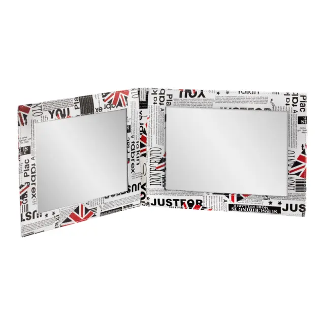 Dvojno frizersko ogledalo z motivom britanske zastave in ročajem. Popoln za delo v frizerskem salonu, da stranki pokažete pričesko na zadnji strani glave.