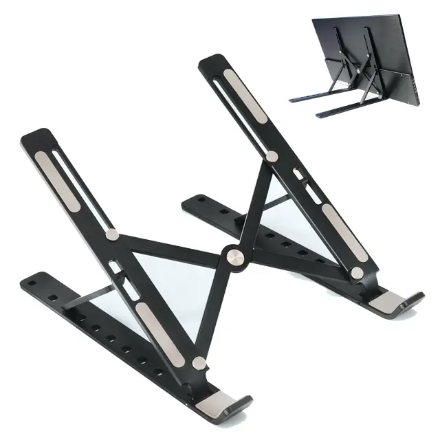 Lahek in zložljiv: prenosno in prilagodljivo stojalo za prenosni računalnik. Z lahkoto se prilega v torbo za prenosni računalnik, saj se lahko zloži v "palčko" minimalne velikosti.