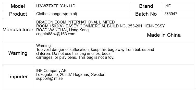 Opozorilo: Da bi se izognili nevarnosti zadušitve, hranite to torbo izven dosega dojenčkov in otrok. Te vrečke ne uporabljajte v otroških posteljah, posteljnih vozičkih ali igralih. Ta torba ni igrača.