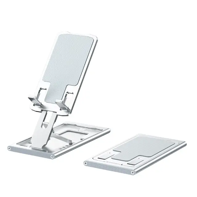 Zložljivo in prenosljivo: Ko stojalo ni v uporabi, ga lahko preprosto zložite za kompaktno shranjevanje in prenosljivost. Vzemite ga s seboj, kamor koli greste, in ga nastavite, kadar koli potrebujete rešitev za gledanje videoposnetkov, video klice ali pretakanje v živo.