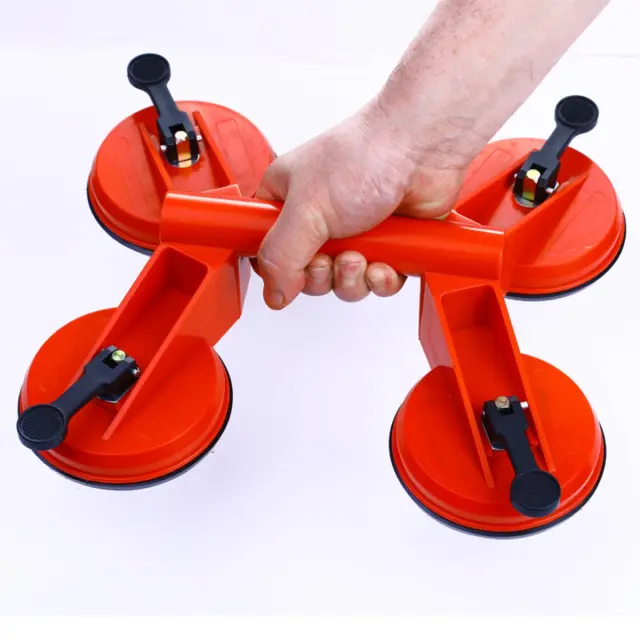Vsestranska uporaba: Ta štiridelni prisesalni dvigalka je zasnovana za široko uporabo: montaža vrat in fasad, postavitev kuhinjskega pulta, rokovanje z ogledali in čiščenje stekla v tovarnah, delavnicah ali na višini. Kot prisesalna naprava za rokovanje s ploščami se prilagaja potrebam na gradbišču in poenostavlja premikanje težkih gladkih materialov, zaradi česar je praktično orodje za gradbena, obnovitvena in vzdrževalna dela stekla.