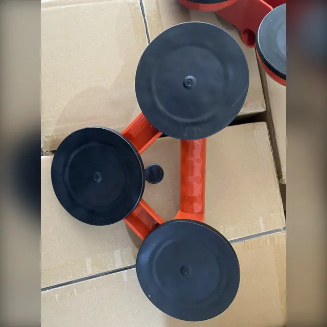 Močan vakuumski oprijem: S pomočjo mehanizma črpalke ta prisesek za dvigovanje stekla ustvari hiter visokomočen negativni tlak, ki se pritrdi na gladke površine. Zasnova s 4 blazinicami za vakuumski prisesek zagotavlja stabilen stik in močno silo držanja za varno dvigovanje in premikanje steklenih plošč in ogledal, primernih za okna in fasade, ter zagotavlja zanesljiv oprijem pri rokovanju in namestitvi.