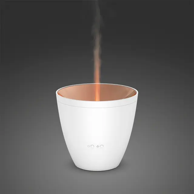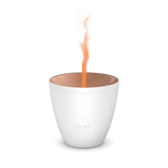 Osvežilnik prostora z Amber Light ™ tehnologijo (svetloba v barvi jantarja) ustvarja čarobno ter prijetno vzdušje v prostoru. Hladno meglico obarva s svetlobo v barvi jantarja, ki ustvarja glamurozen videz plamena in topline. Bronast, varljivo pristen plamen spremeni prostor v oazo dobrega počutja. Ta tihi in energetsko učinkovit osvežilnik prostora uporablja ultrazvočno tehnologijo za oddajanje hladne meglice in optimalno razpršitev eteričnih olj v prostor, kadar koli si to zaželite – do 10 ur z enim polnjenjem.