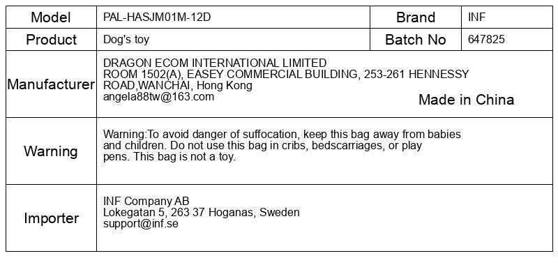 Opozorilo: Da bi se izognili nevarnosti zadušitve, vrečko hranite izven dosega dojenčkov in otrok. Vrečke ne uporabljajte v otroških posteljicah, vozičkih za spanje ali igralih. Ta vreča ni igrača.