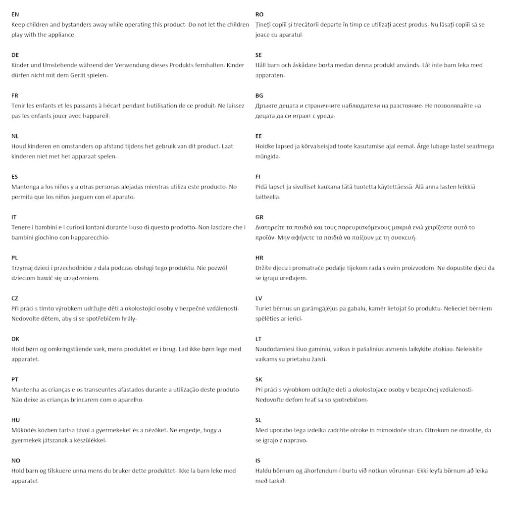 Med uporabo tega izdelka zadržite otroke in mimoidoče stran. Otrokom ne dovolite, da se igrajo z napravo.