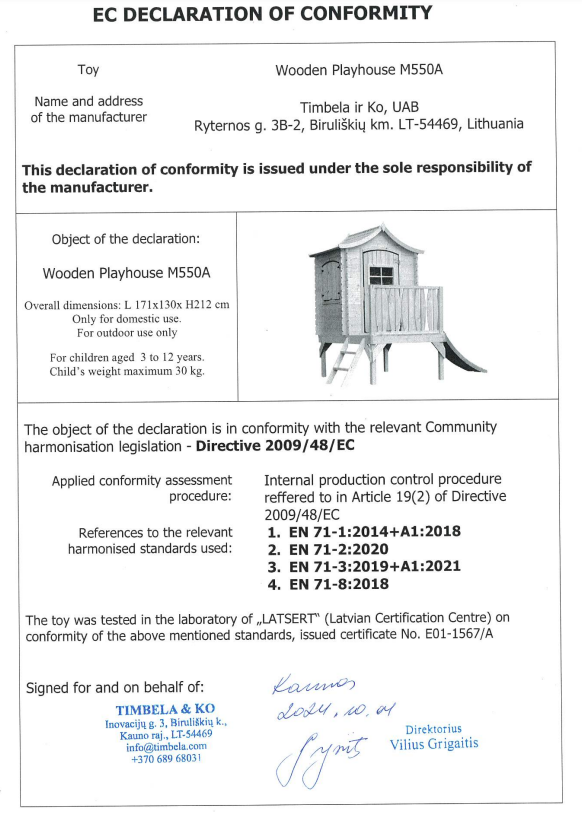 Zunanja otroška hiška, 19 mm deske - Lesena igralna hiška s toboganom V212 x 112 x 146 cm / 1,1 m2 - TIMBELA M550A, naravni les