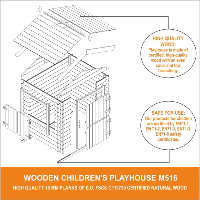 Tehnične specifikacije neobdelane lesene otroške igralnice M516-1 brez tal:
