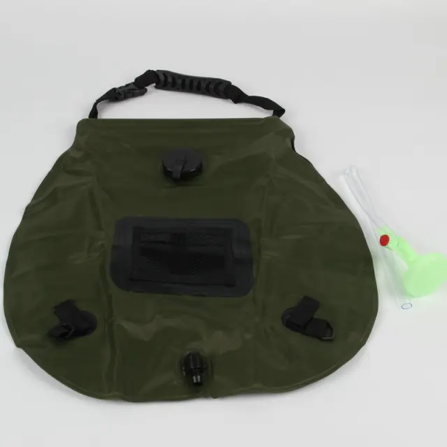 Topla voda na zahtevo: Uživajte v osvežujoči prhi kjerkoli z našo prenosno vrečo za prhanje pri kampiranju. Preprosto napolnite vrečo z vodo in pustite, da jo sončni žarki ogrejejo. Črn PVC material učinkovito absorbira sončno energijo, kar vam zagotavlja toplo vodo za udobno izkušnjo prhanja na prostem. Popolna za kampiranje, pohodništvo in druge pustolovščine na prostem, ta solarna vreča za prhanje zagotavlja, da ostanete čisti in osveženi, ne glede na to, kje ste.