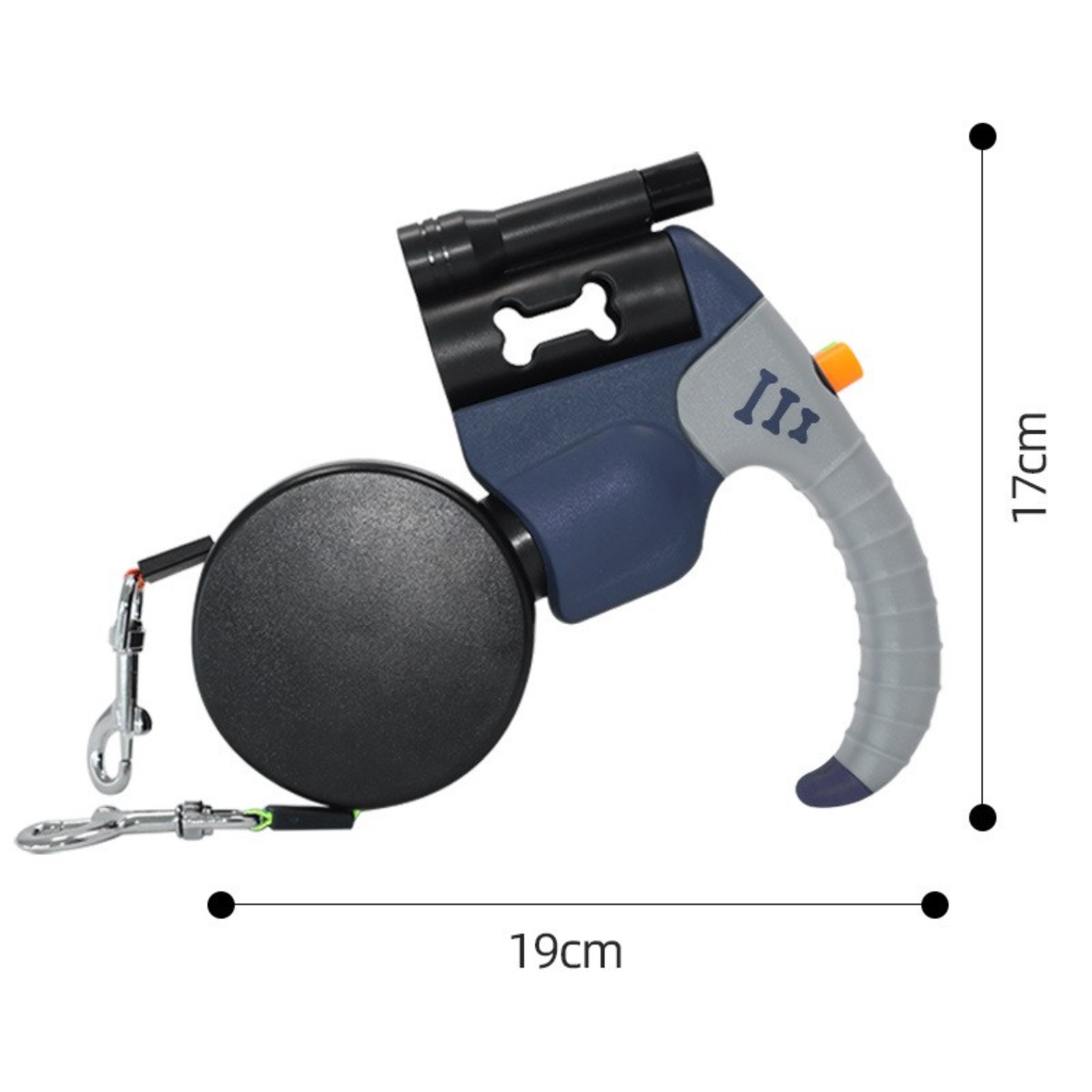 Parametri: Dvoglavi zložljivi povodec z LED lučko; Upravljanje z enim gumbom; Potrebna je ena baterija AAA (ni priložena); Na baterije; Nočna osvetlitev; Odporno na udarce