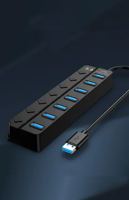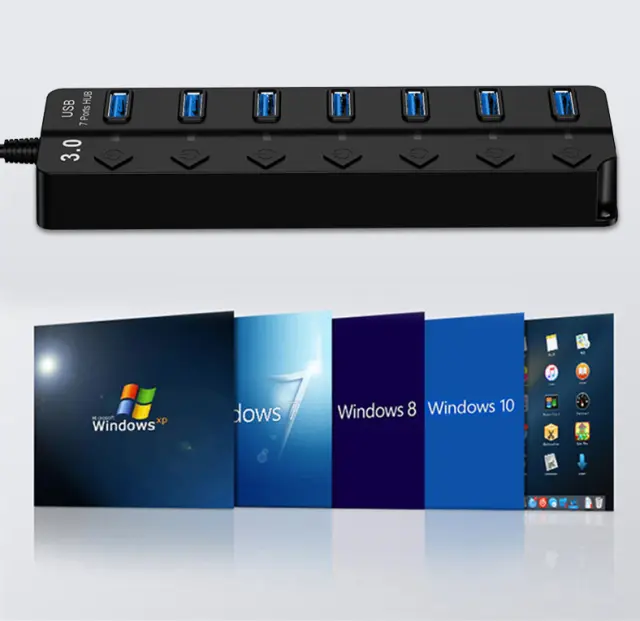 Zvezdišče USB s 7 vhodi, ki jih je mogoče aktivirati posamezno z gumbom za vklop/izklop. Priključite lahko več USB naprav hkrati, kot so zunanji trdi diski, USB ključki, tiskalniki, tipkovnice, miške, čitalniki kartic, slušalke, mikrofoni, spletne kamere in drugo. Podatke lahko prenašate s hitrostjo do 5 Gbps, kar je dovolj hitro za prenos HD filmov v nekaj sekundah.
