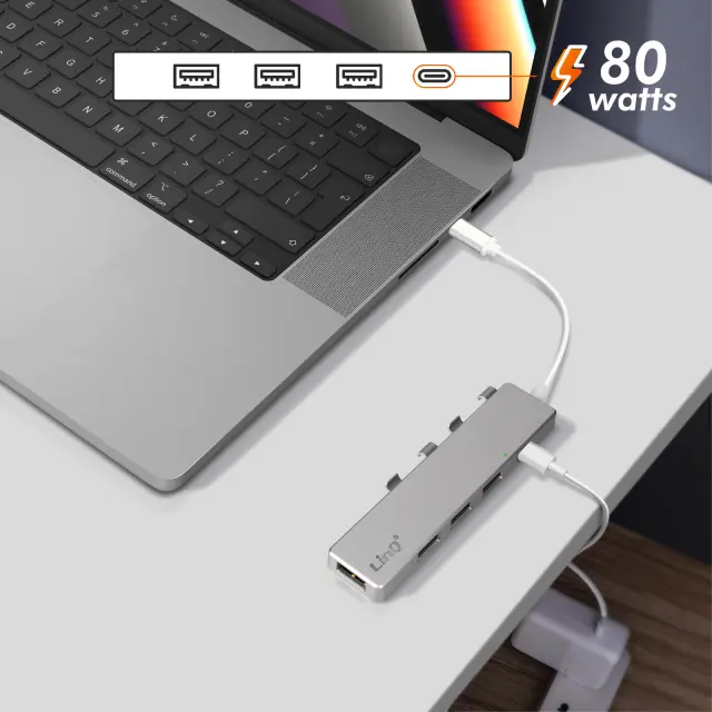 LinQ USB-C Hub s 4 vrati USB za razširitev povezljivosti vašega prenosnika, pametnega telefona ali tablice. Omogoca priklop vec USB naprav hkrati. Hitrost prenosa 5 Gbps in funkcija OTG.