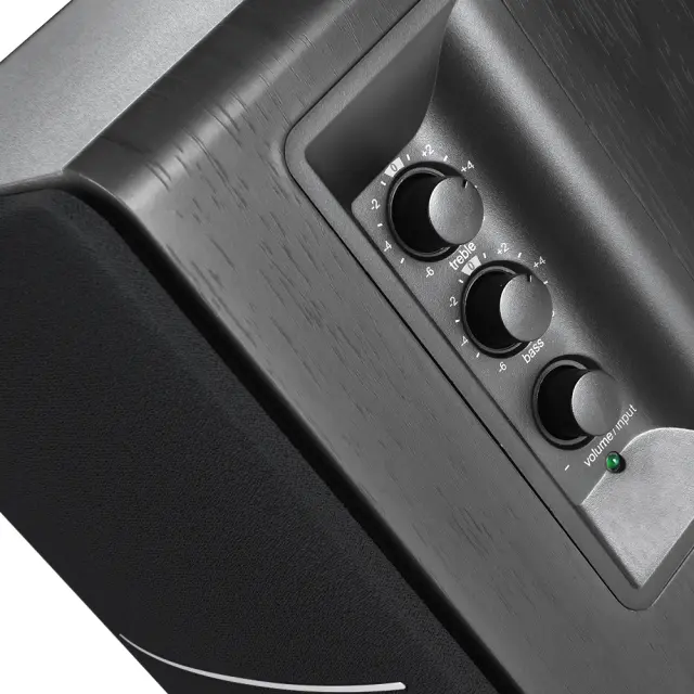 Gumbi na stranski plošči so odgovorni za nastavitev izenačevalnika po vaših željah. Kontrole se nahajajo na aktivnem/aktivnem zvočniku. Priložen priročen brezžični daljinski upravljalnik olajša prilagajanje najpomembnejših funkcij vaše naprave, povezane z Bluetooth. S samo gibom zapestja lahko vklopite napajanje, spremenite vrstni red predvajanja ali izberete zvočni vir. Sploh vam ni treba vstati iz udobnega stola!