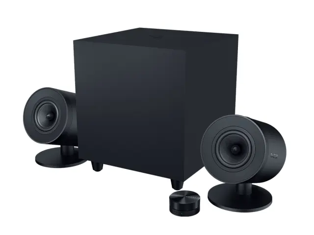 Nastavite zvočno kuliso za zmago z Razer Nommo V2 Pro — igralnim sistemom zvočnikov, zasnovanim za zvok, ki napolni prostor. S tehnologijo THX® Spatial Audio in Razer Chroma™ RGB se pripravite na izjemno izkušnjo, ki zajema sliko in zvok.