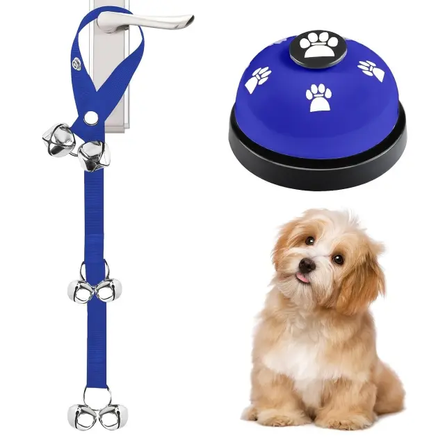 Učinkovito usposabljanje za kahlico: Ta komplet zvonca za usposabljanje hišnih ljubljenčkov združuje vrv s 7 zvončki in zvonec za pritiskanje, kar zagotavlja celovito rešitev za usposabljanje vašega psa za kahlico. Dosleden zvok pomaga vašemu hišnemu ljubljenčku, da poveže zvonjenje z odhodom ven, kar olajša in učinkoviteje usposabljanje. Vrv je združljiva z večino kljuk na vratih, zvonec za pritiskanje pa je enostaven za uporabo hišnim ljubljenčkom.